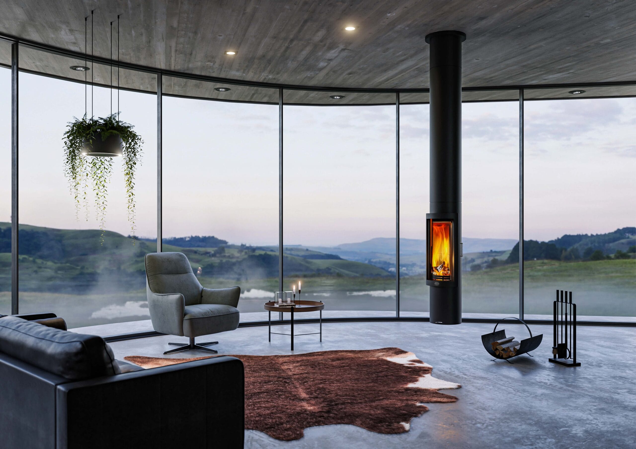 ANDORRA-modell er en takmontert kombinasjonsovn med et slankt og moderne design. Ovnen har en justerbar totalhøyde fra 203 til 436 cm og er valgfritt tilgjengelig med en roterende versjon.
