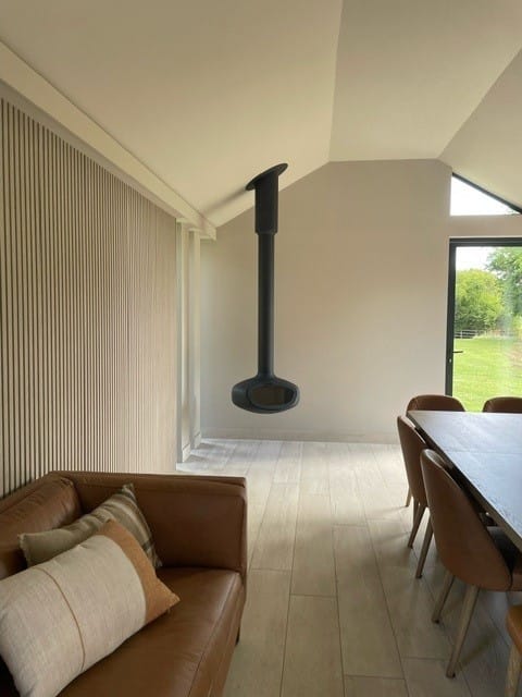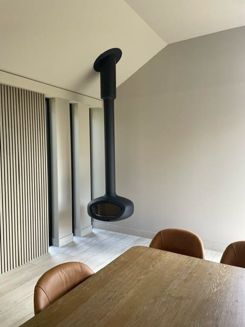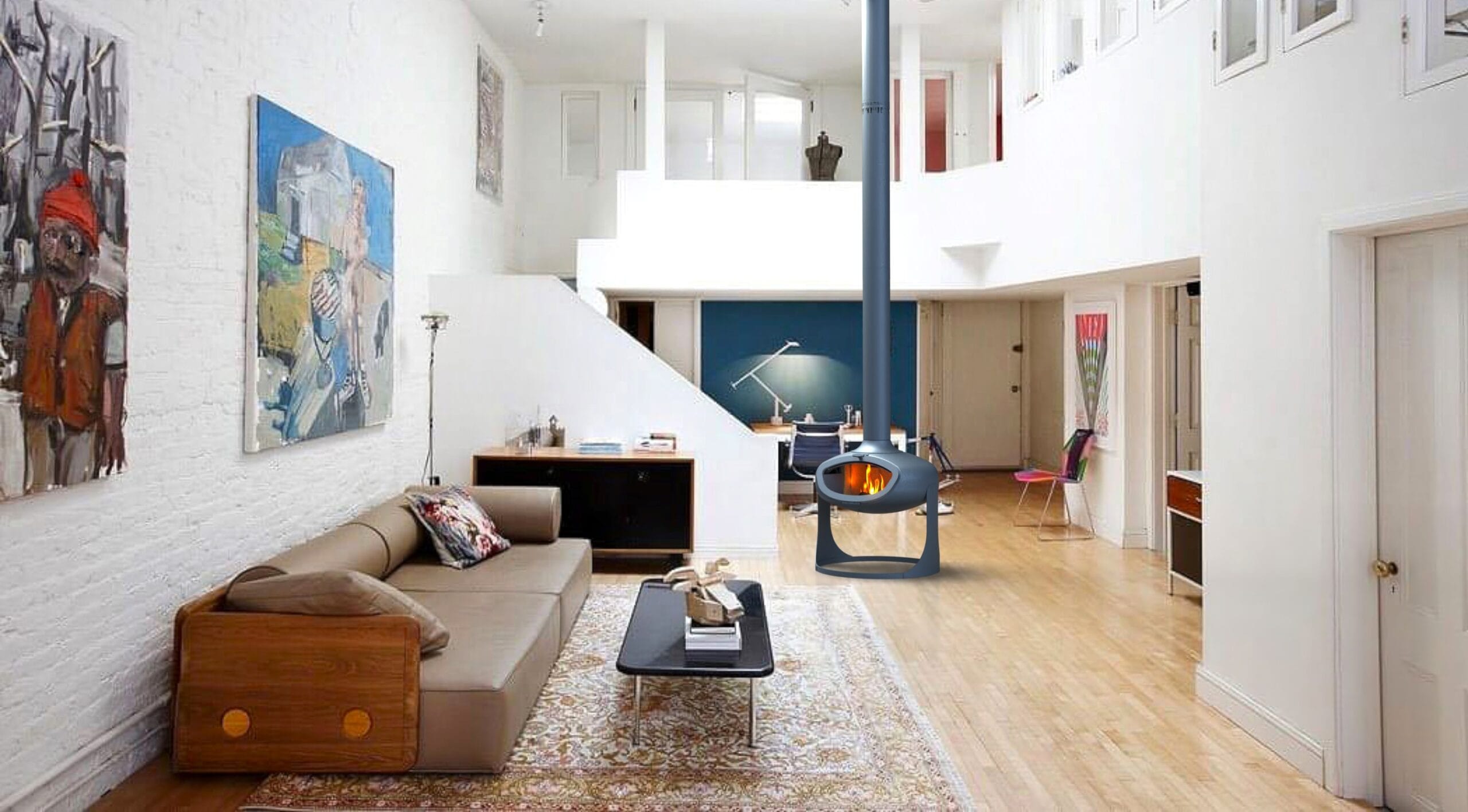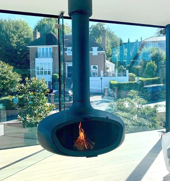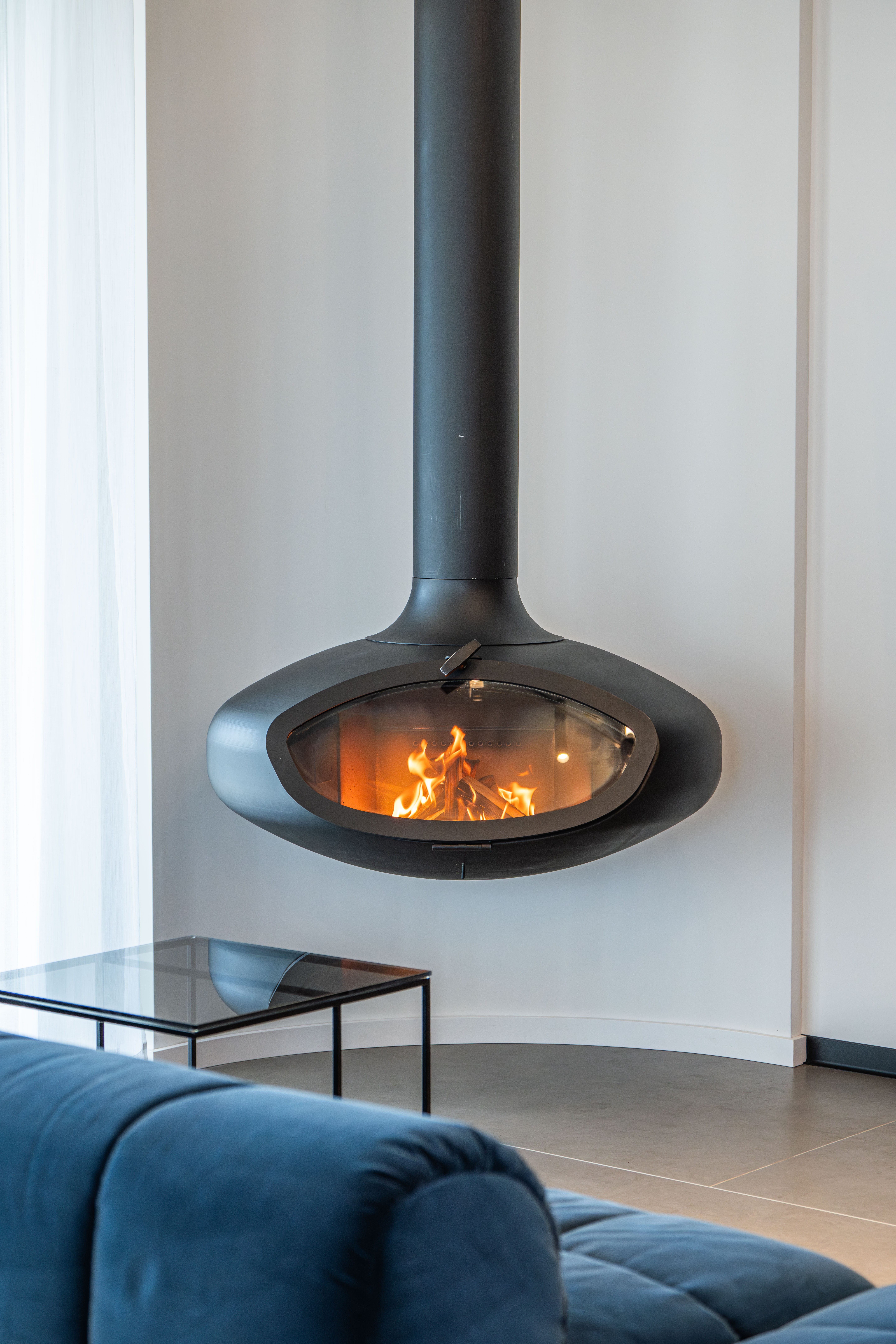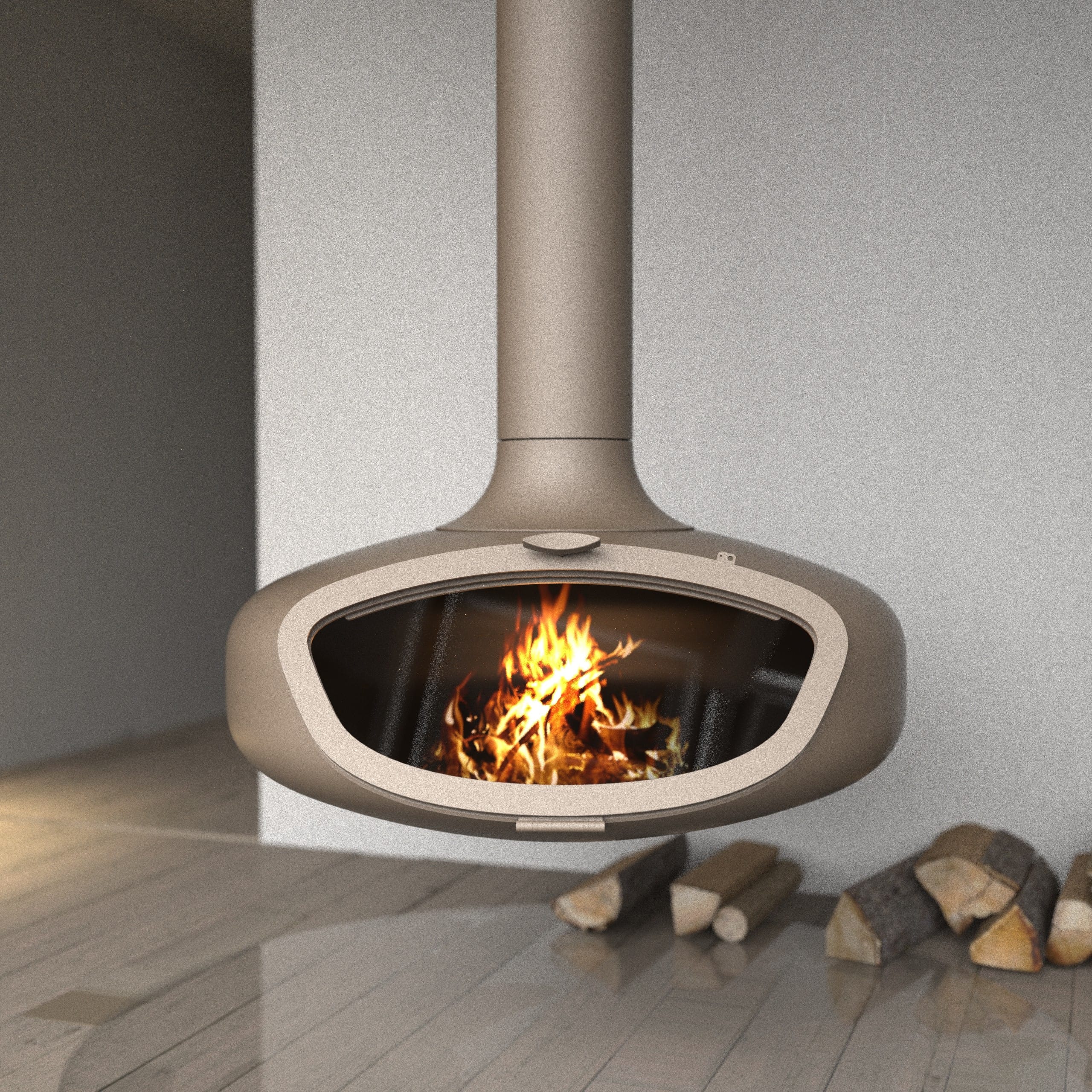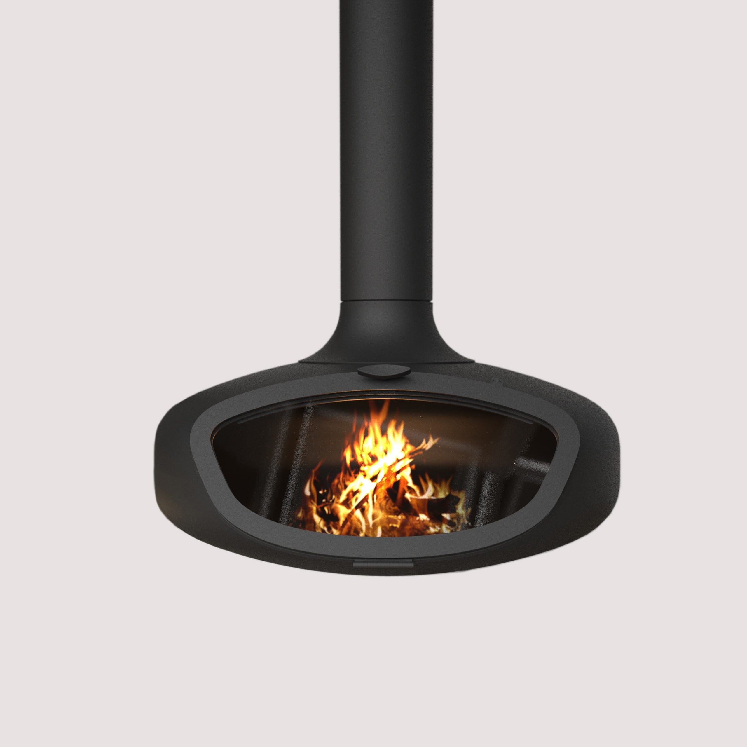 FIREBOB -denne iøynefallende hengende vedovnen er designet med fokus på effektivitet og bærekraftig livsstil, takket være et rentbrennende system som gjør den egnet for bruk i områder med røykkontroll.