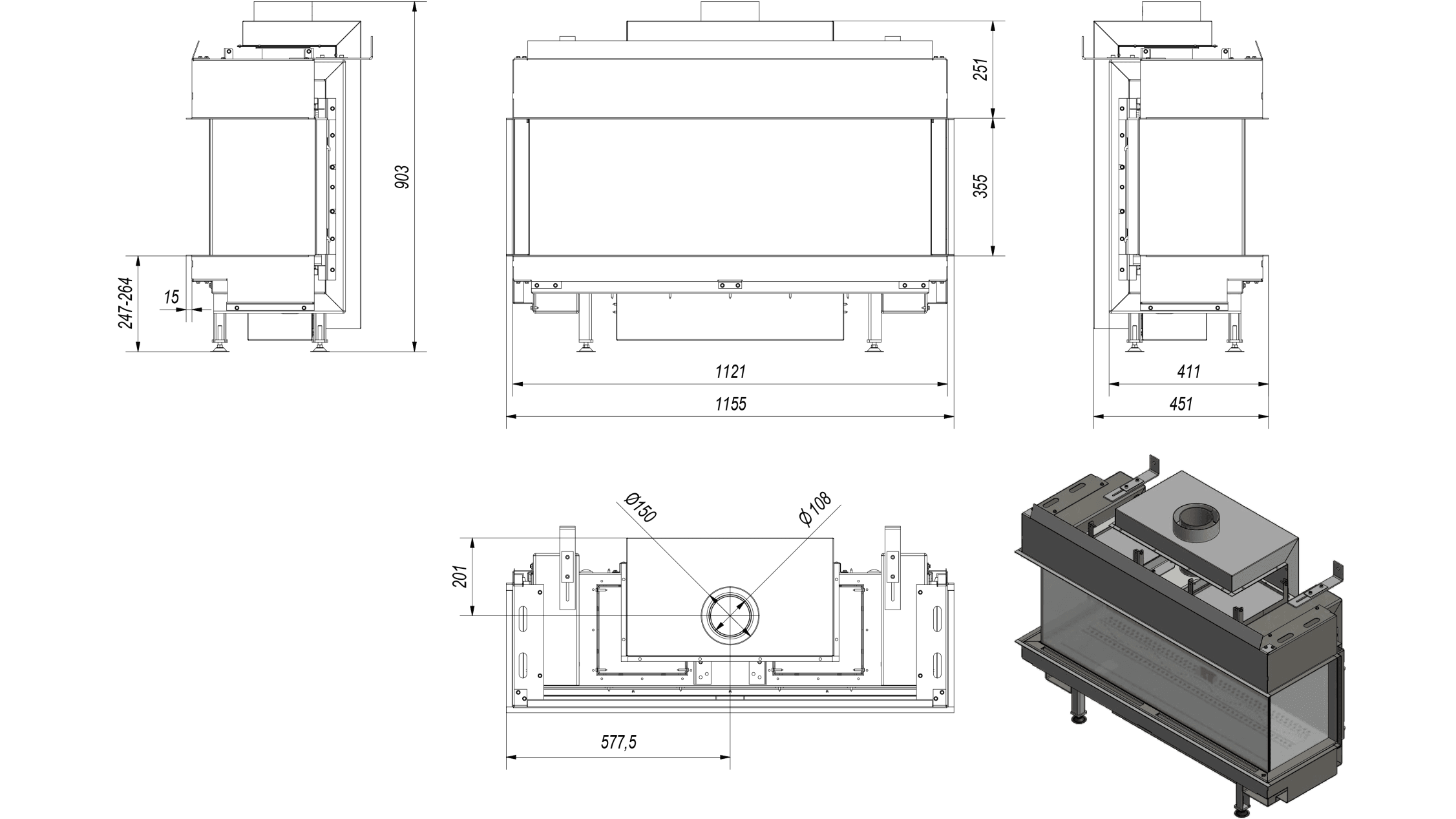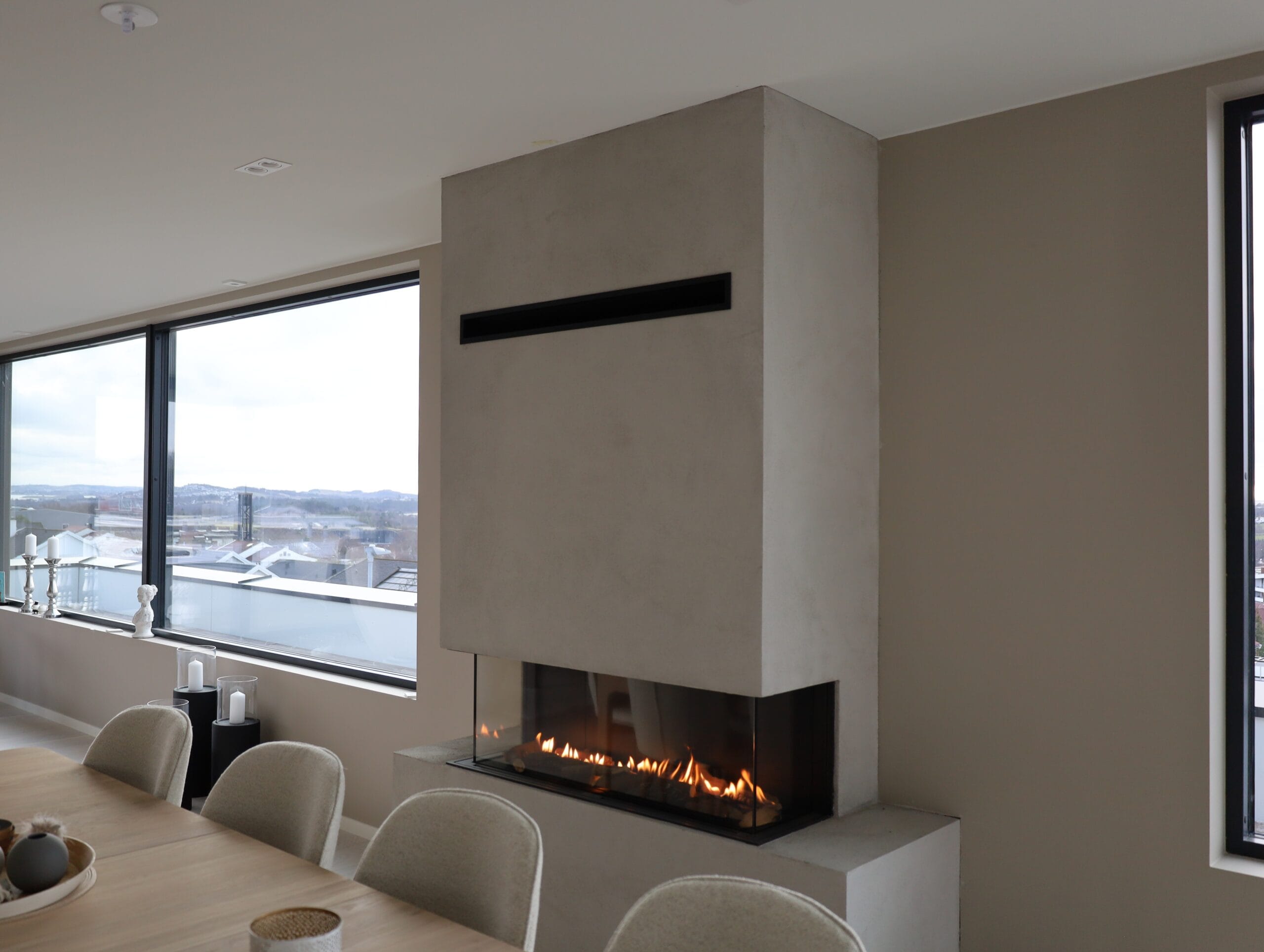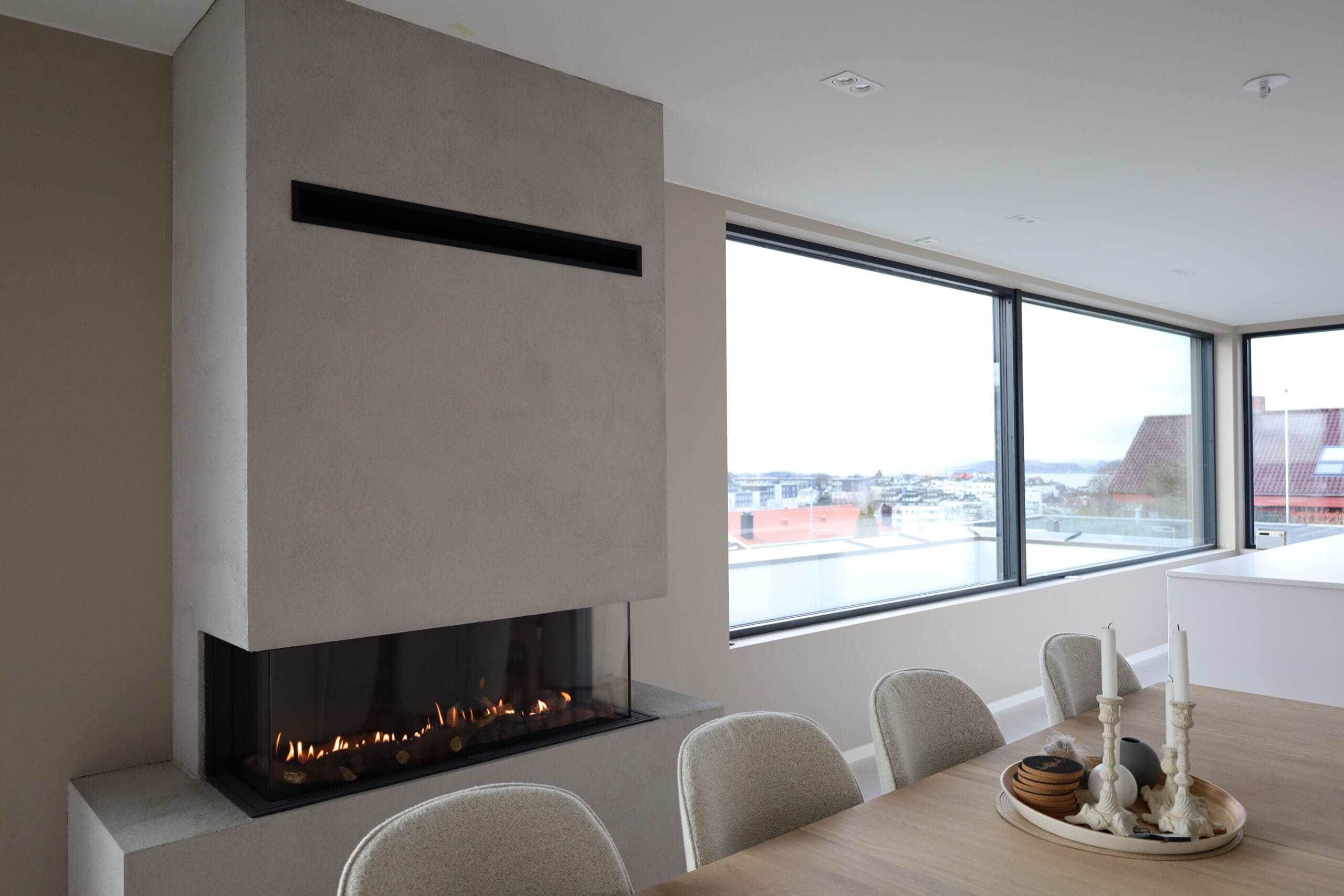 Enkel installasjon uten skorstein: det koaksiale kanalsystemet gjør det mulig å installere peisen i rom uten tradisjonell skorstein – det holder å føre kanalen ut gjennom vegg eller tak.