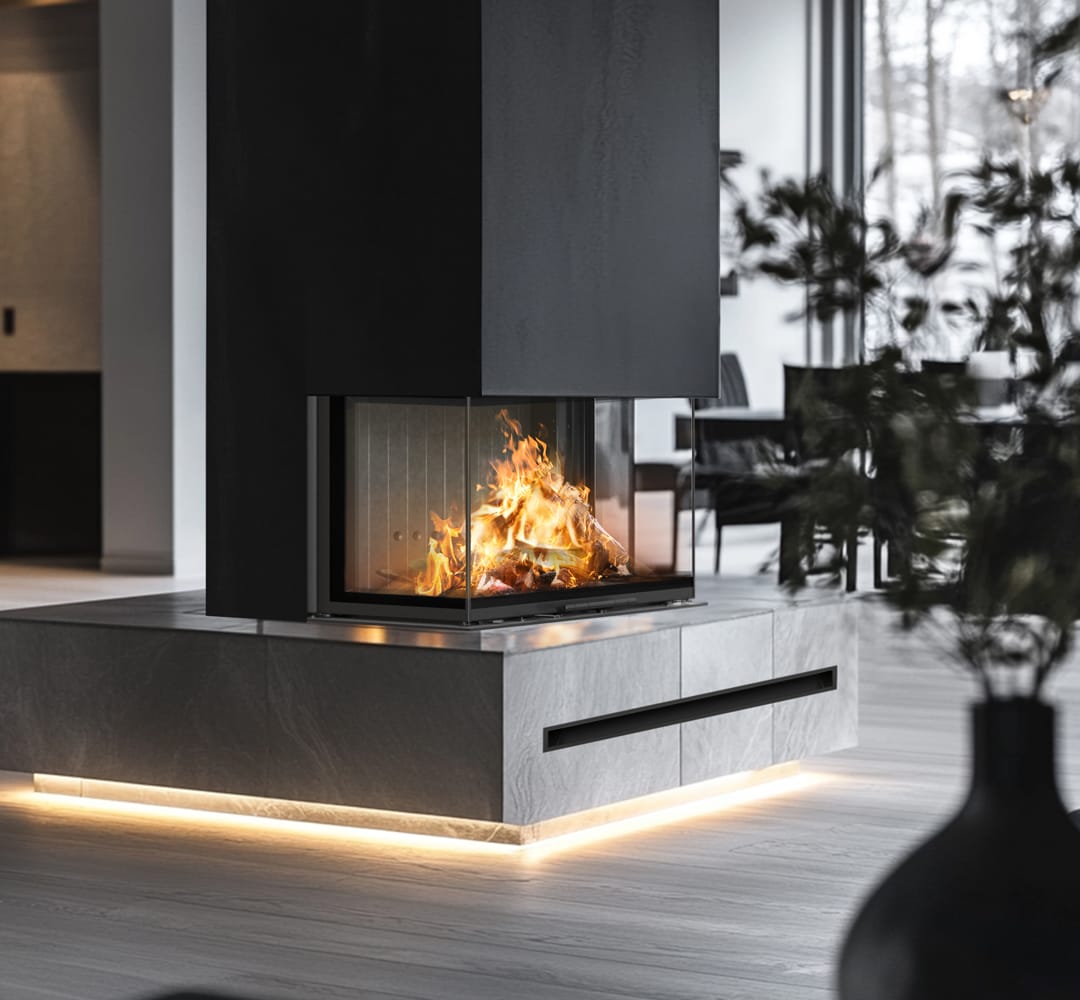 Takket være renglass-systemet får du alltid klart innsyn til flammene og et estetisk blikkfang i stuen.