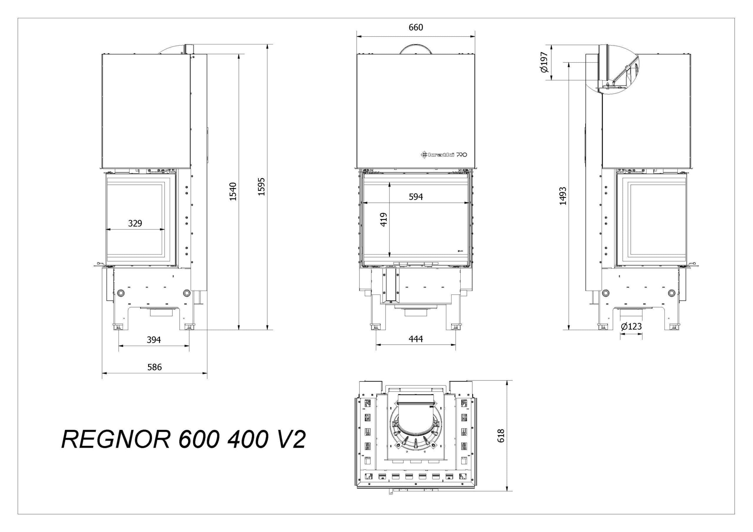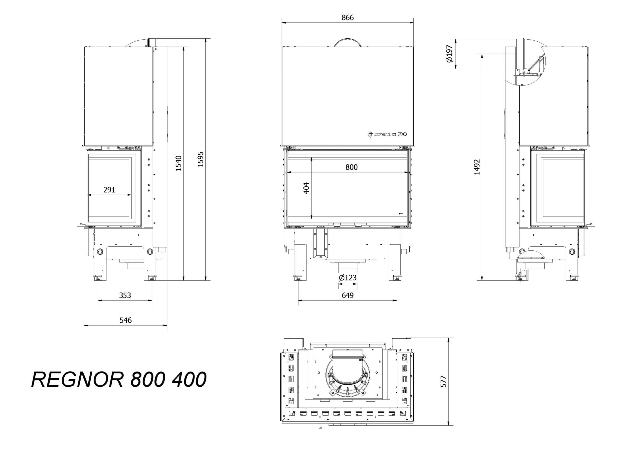 REGNOR vedfyrt peis med klart innsyn og renglass-system
