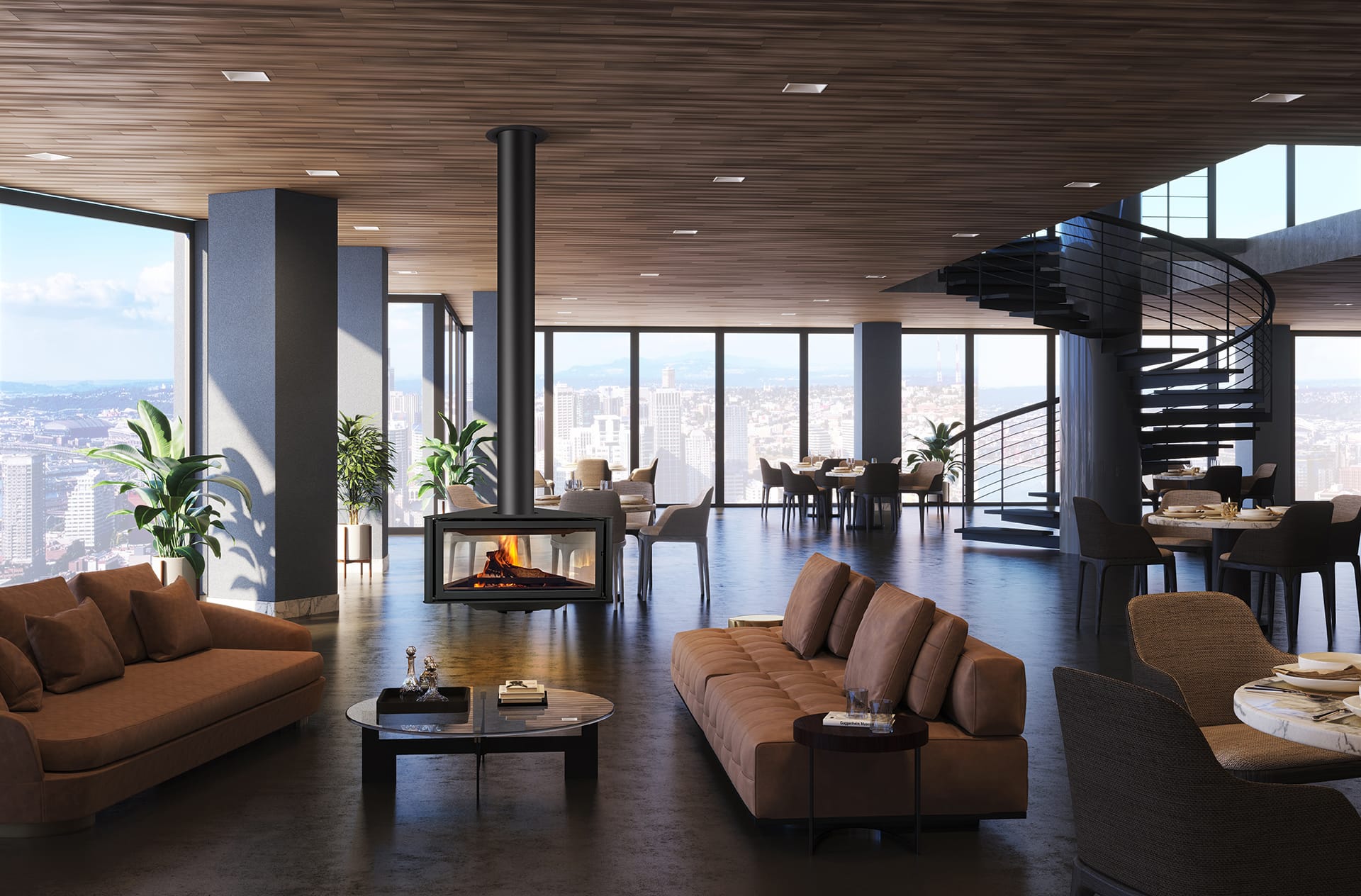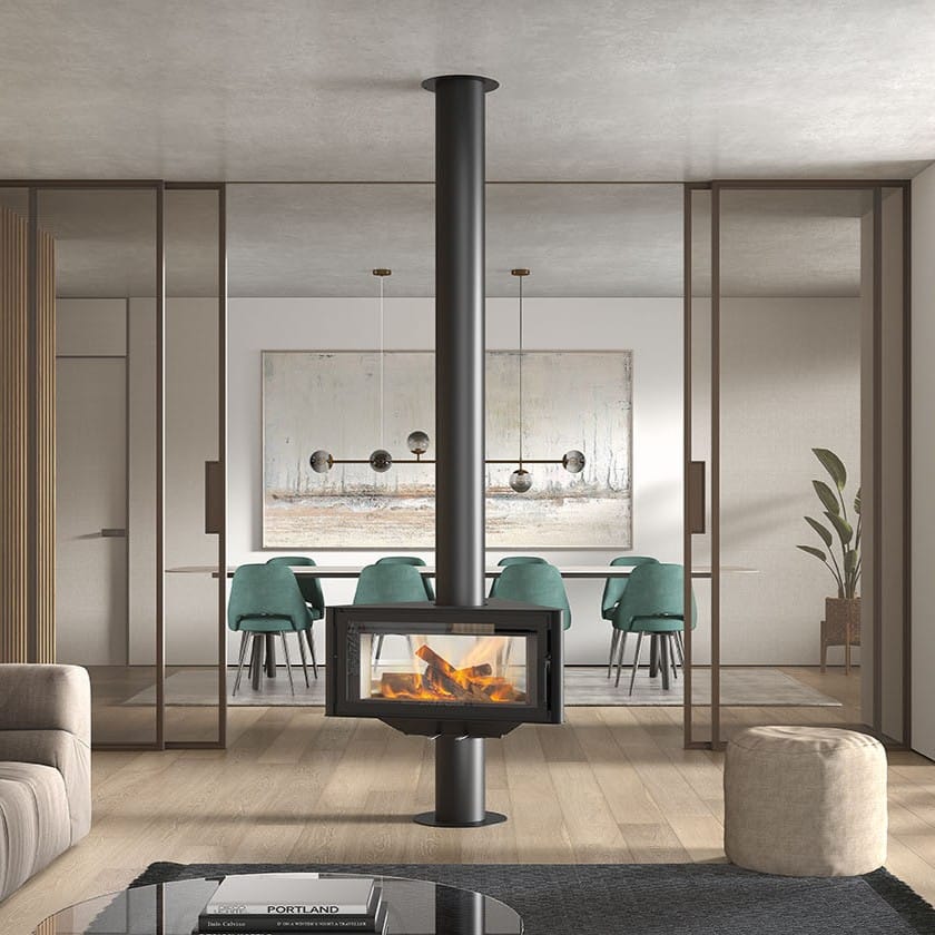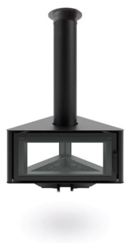 Gi rommet et eksklusivt uttrykk med en moderne vedfyrt ovn i sort stål. Denne stilrene designpeisen har glass på 3 sider, som gir panoramainnsyn til flammene og skaper en unik og lun atmosfære.