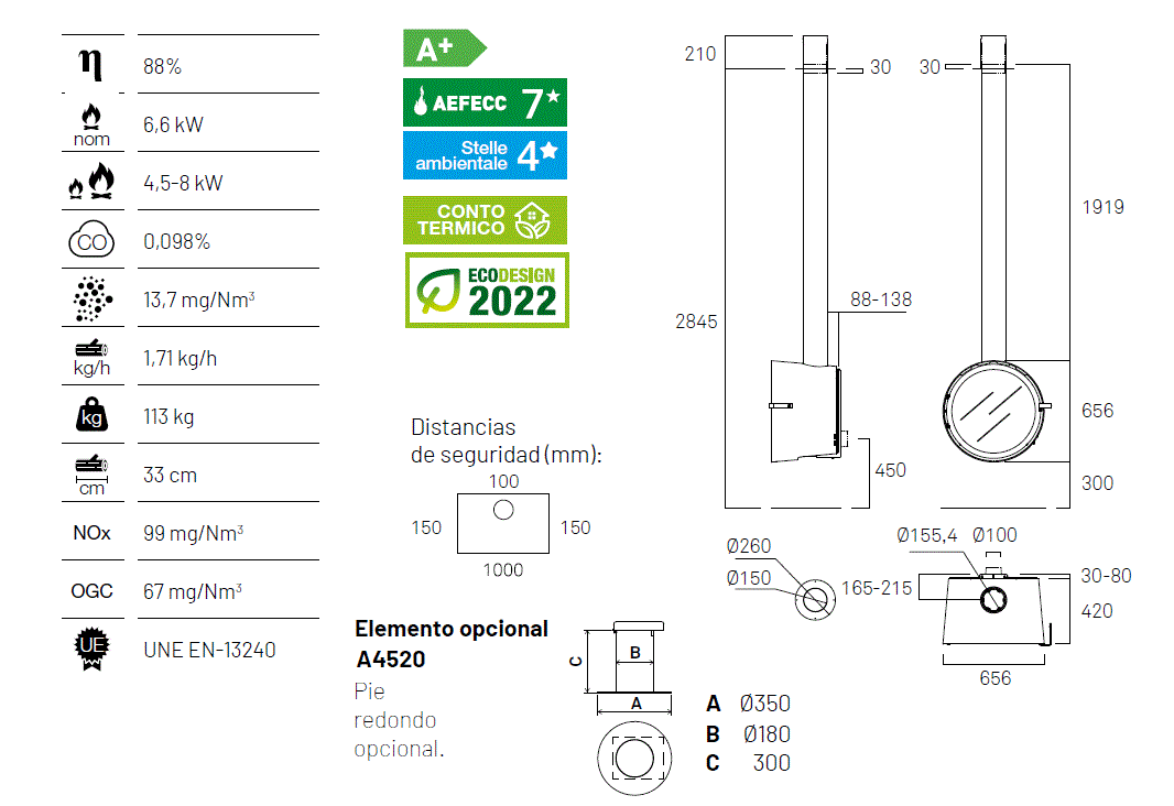 • Pidestal  ovn– frittstÃ¥ende løsning med samme runde design