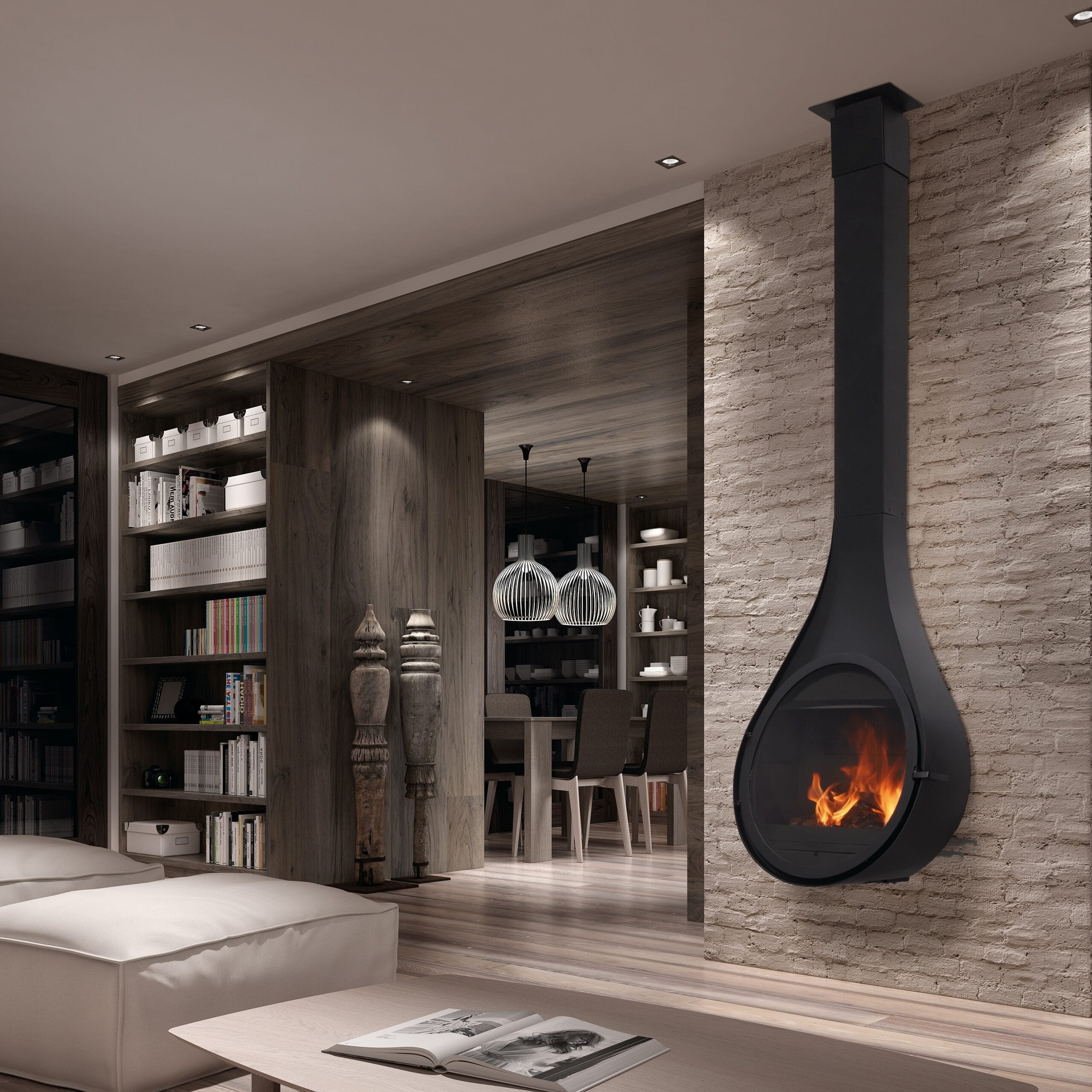 Denne eksklusive, vegghengte ovnen med elegant dråpeform er et ekte blikkfang i rommet. Den veggmonterte løsningen gir et lett og luftig uttrykk samtidig som den frigjør gulvplass. Ovnen kombinerer funksjonalitet og arkitektonisk design på en elegant måte. Et ideelt valg for kunder som ønsker en moderne, plassbesparende og stilren varmeløsning.
