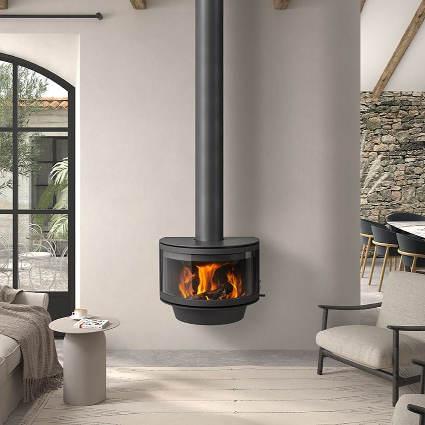 Vegghengt rund ovnmed panoramaglass – svevende eleganse