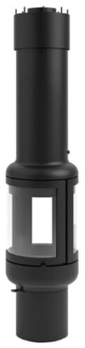 Den elegante sylindriske formen og den sorte ståloverflaten gjør ovnen til et naturlig blikkfang i stuen. De store glassfeltene gir en flott utsikt til flammene. Dette skaper en varm og hyggelig atmosfære i rommet.
