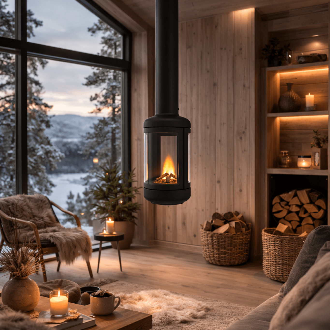 Denne moderne vedovnen kombinerer stilrent design og høy funksjonalitet. Den passer perfekt i moderne hjem og skandinaviske interiører.