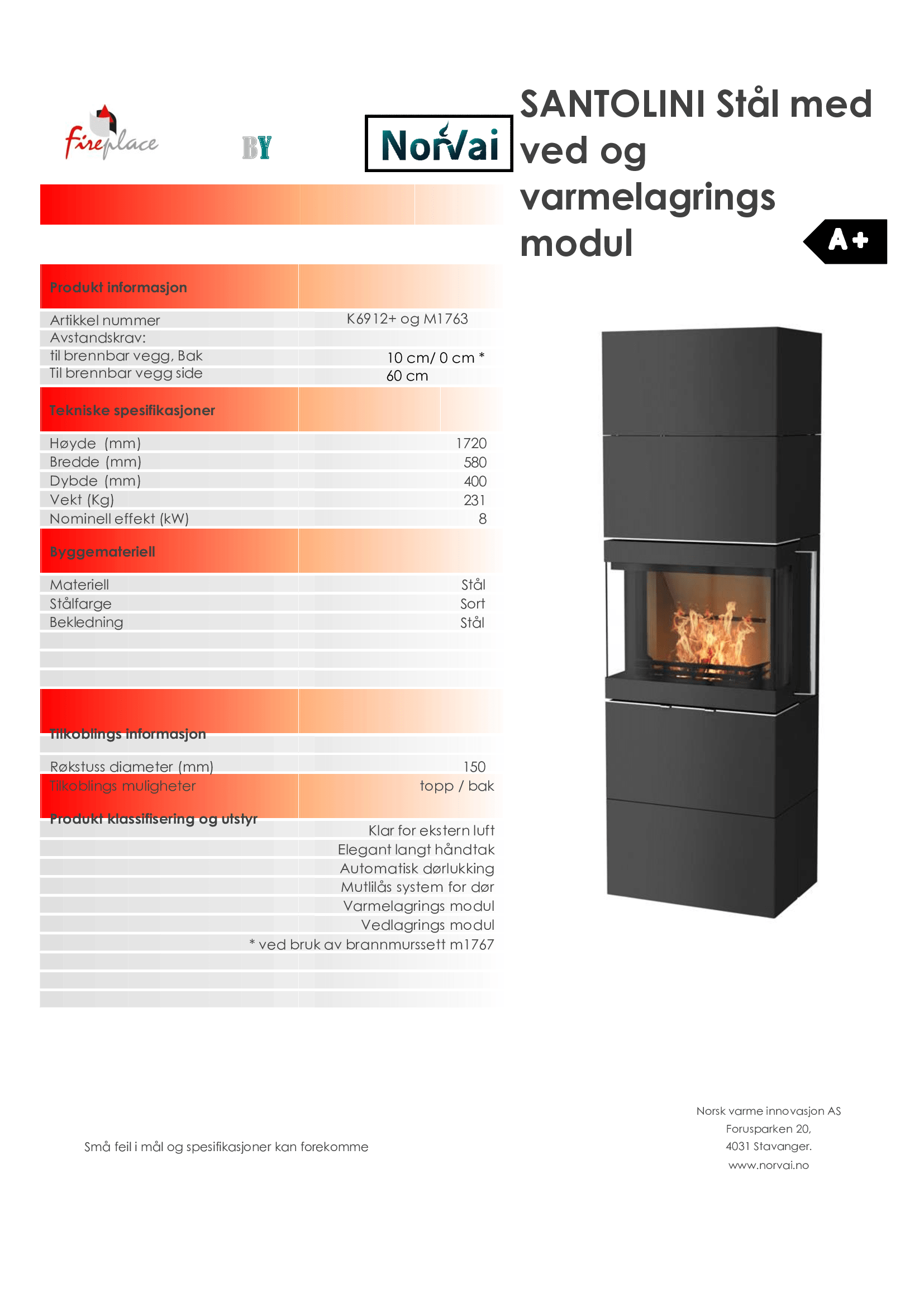 Ovnen er utstyrt med varmelagringssteiner, noe som gir en god og jevn varme etter fyring. Det følger også med en vedlagringsmodul, hvor du kan lagre veden.