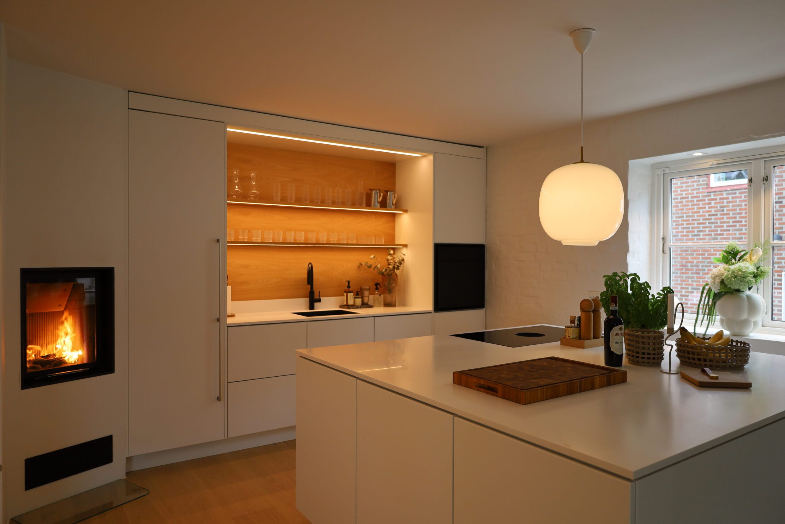 Kjøkkenpeiser blir stadig mer populære som både dekorativ og funksjonell detalj – de varmer opp rommet og gjør matlagingen ENDA koseligere.